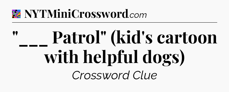 You’ll be glad to know, that your search for tips for Crosswords With Friends Mini game is ending right on this page. With this website, you will not need any other help to pass difficult task or level. It helps you with “___ Patrol” (kid’s cartoon with helpful dogs) Crossword Clue answers, some additional solutions and useful tips and tricks. Using our website you will be able to quickly solve and complete Crosswords With Friends Mini game which was created by the Zynga developer together with other games.