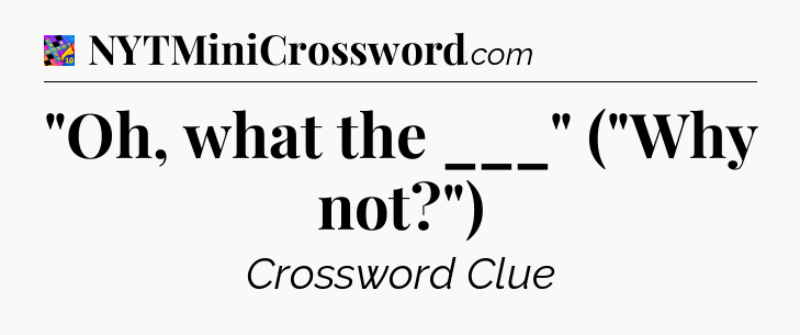 You’ll be glad to know, that your search for tips for Crosswords With Friends Mini game is ending right on this page. With this website, you will not need any other help to pass difficult task or level. It helps you with “Oh, what the ___” (“Why not?”) Crossword Clue answers, some additional solutions and useful tips and tricks. Using our website you will be able to quickly solve and complete Crosswords With Friends Mini game which was created by the Zynga developer together with other games.