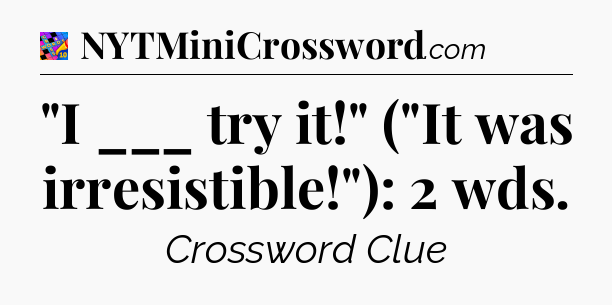 You’ll be glad to know, that your search for tips for Crosswords With Friends Mini game is ending right on this page. With this website, you will not need any other help to pass difficult task or level. It helps you with “I ___ try it!” (“It was irresistible!”): 2 wds Crossword Clue answers, some additional solutions and useful tips and tricks. Using our website you will be able to quickly solve and complete Crosswords With Friends Mini game which was created by the Zynga developer together with other games.