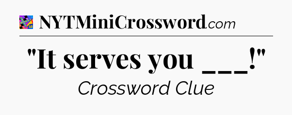 You’ll be glad to know, that your search for tips for Crosswords With Friends Mini game is ending right on this page. With this website, you will not need any other help to pass difficult task or level. It helps you with “It serves you ___!” Crossword Clue answers, some additional solutions and useful tips and tricks. Using our website you will be able to quickly solve and complete Crosswords With Friends Mini game which was created by the Zynga developer together with other games.