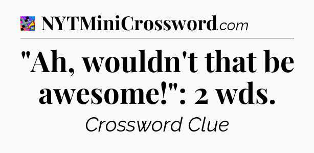 You’ll be glad to know, that your search for tips for Crosswords With Friends Mini game is ending right on this page. With this website, you will not need any other help to pass difficult task or level. It helps you with “Ah, wouldn’t that be awesome!”: 2 wds Crossword Clue answers, some additional solutions and useful tips and tricks. Using our website you will be able to quickly solve and complete Crosswords With Friends Mini game which was created by the Zynga developer together with other games.
