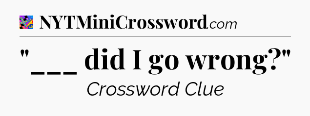 You’ll be glad to know, that your search for tips for Crosswords With Friends Mini game is ending right on this page. With this website, you will not need any other help to pass difficult task or level. It helps you with “___ did I go wrong?” Crossword Clue answers, some additional solutions and useful tips and tricks. Using our website you will be able to quickly solve and complete Crosswords With Friends Mini game which was created by the Zynga developer together with other games.