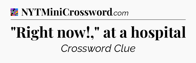 You’ll be glad to know, that your search for tips for Crosswords With Friends Mini game is ending right on this page. With this website, you will not need any other help to pass difficult task or level. It helps you with “Right now!,” at a hospital Crossword Clue answers, some additional solutions and useful tips and tricks. Using our website you will be able to quickly solve and complete Crosswords With Friends Mini game which was created by the Zynga developer together with other games.