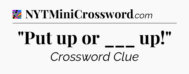 You’ll be glad to know, that your search for tips for Crosswords With Friends Mini game is ending right on this page. With this website, you will not need any other help to pass difficult task or level. It helps you with “Put up or ___ up!” Crossword Clue answers, some additional solutions and useful tips and tricks. Using our website you will be able to quickly solve and complete Crosswords With Friends Mini game which was created by the Zynga developer together with other games.