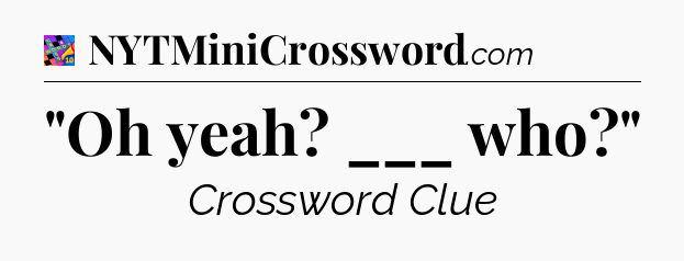 You’ll be glad to know, that your search for tips for Crosswords With Friends Mini game is ending right on this page. With this website, you will not need any other help to pass difficult task or level. It helps you with “Oh yeah? ___ who?” Crossword Clue answers, some additional solutions and useful tips and tricks. Using our website you will be able to quickly solve and complete Crosswords With Friends Mini game which was created by the Zynga developer together with other games.