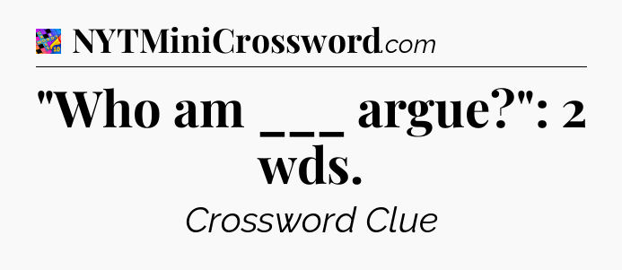 The clue “”Who am ___ argue?”: 2 wds” most recently appeared in a Crosswords With Friends on January 11, 2025.