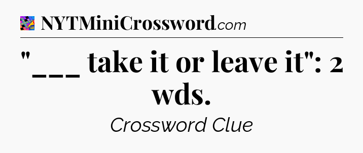 The clue “”___ take it or leave it”: 2 wds” most recently appeared in a Crosswords With Friends on January 20, 2024.