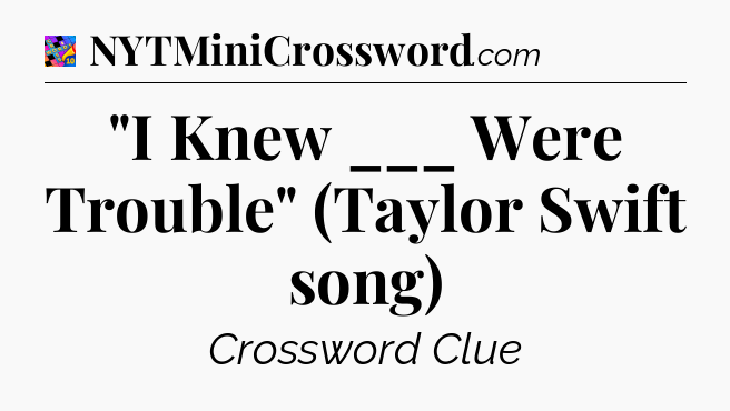 This page will help you find the correct answer to the ‘”I Knew ___ Were Trouble” (Taylor Swift song)’ clue from Crosswords With Friends. If you’re stuck, simply scroll down to see the solution. We also provide extra answers, helpful hints, and tips to make solving Crosswords With Friends easier and more enjoyable. Use this resource anytime you need quick assistance with tough clues!