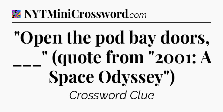 The correct answer to the crossword clue “”Open the pod bay doors, ___” (quote from “2001: A Space Odyssey”)” is HAL.