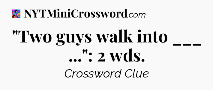 The clue “”Two guys walk into ___ …”: 2 wds” most recently appeared in a Crosswords With Friends on January 28, 2024.