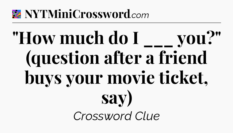 What is the answer to the clue “”How much do I ___ you?” (question after a friend buys your movie ticket, say)”?