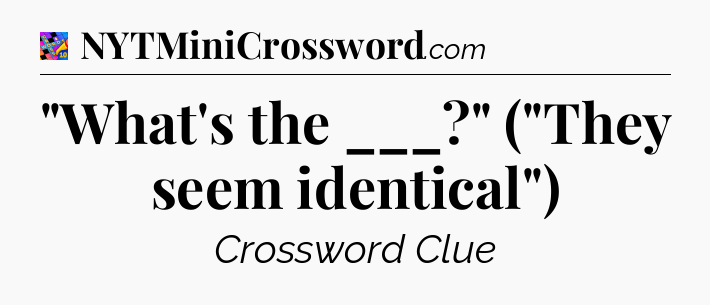 This page will help you find the correct answer to the ‘”What’s the ___?” (“They seem identical”)’ clue from Crosswords With Friends. If you’re stuck, simply scroll down to see the solution. We also provide extra answers, helpful hints, and tips to make solving Crosswords With Friends easier and more enjoyable. Use this resource anytime you need quick assistance with tough clues!