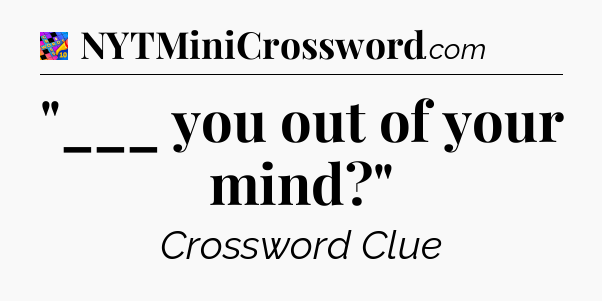 This page will help you find the correct answer to the ‘”___ you out of your mind?”‘ clue from Crosswords With Friends. If you’re stuck, simply scroll down to see the solution. We also provide extra answers, helpful hints, and tips to make solving Crosswords With Friends easier and more enjoyable. Use this resource anytime you need quick assistance with tough clues!