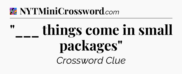 There is 1 possible answer for the crossword clue “”___ things come in small packages””.