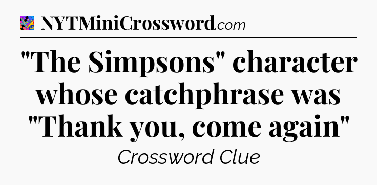 There is 1 possible answer for the crossword clue “”The Simpsons” character whose catchphrase was “Thank you, come again””.