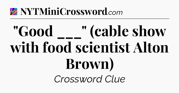 There is 1 possible answer for the crossword clue “”Good ___” (cable show with food scientist Alton Brown)”.