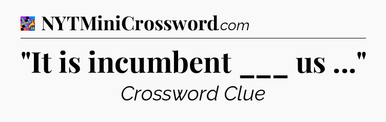 The Answer for “It is incumbent ___ us …” Crossword is: