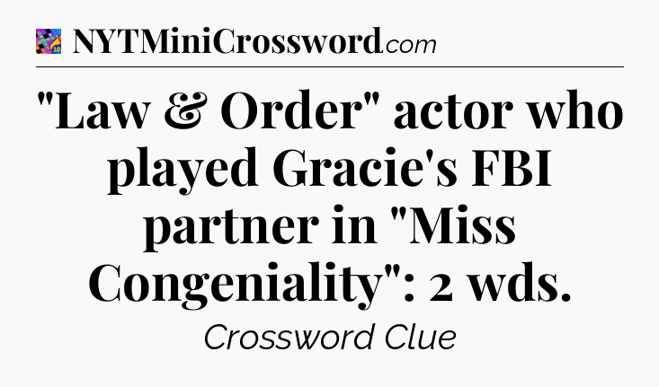 The clue “”Law & Order” actor who played Gracie’s FBI partner in “Miss Congeniality”: 2 wds” most recently appeared in a Crosswords With Friends on October 1, 2025.