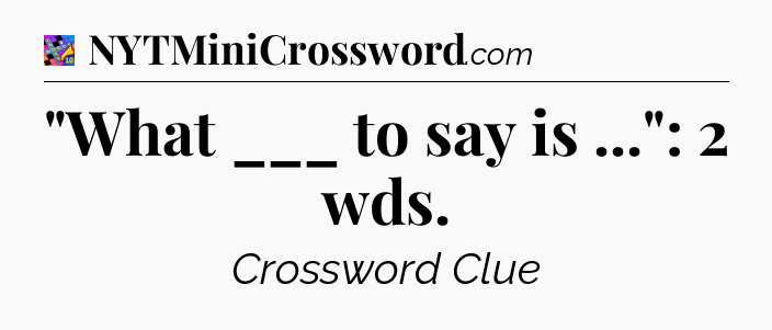 What is the answer to the clue “”What ___ to say is …”: 2 wds”?