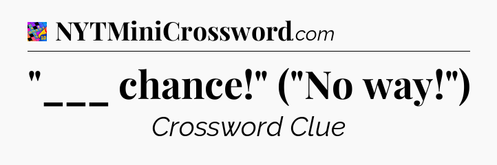This page will help you find the correct answer to the ‘”___ chance!” (“No way!”)’ clue from Crosswords With Friends. If you’re stuck, simply scroll down to see the solution. We also provide extra answers, helpful hints, and tips to make solving Crosswords With Friends easier and more enjoyable. Use this resource anytime you need quick assistance with tough clues!