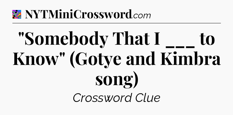 There is 1 possible answer for the crossword clue “”Somebody That I ___ to Know” (Gotye and Kimbra song)”.