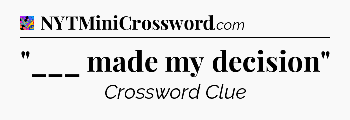 This page will help you find the correct answer to the ‘”___ made my decision”‘ clue from Crosswords With Friends. If you’re stuck, simply scroll down to see the solution. We also provide extra answers, helpful hints, and tips to make solving Crosswords With Friends easier and more enjoyable. Use this resource anytime you need quick assistance with tough clues!