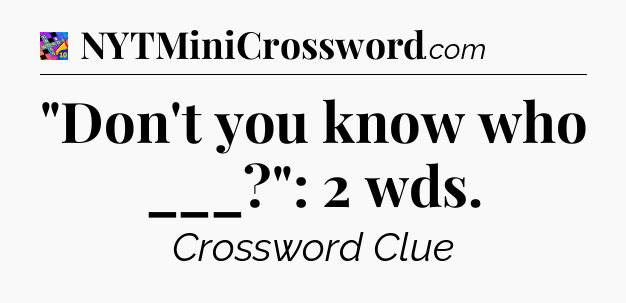 This page will help you find the correct answer to the ‘”Don’t you know who ___?”: 2 wds’ clue from Crosswords With Friends. If you’re stuck, simply scroll down to see the solution. We also provide extra answers, helpful hints, and tips to make solving Crosswords With Friends easier and more enjoyable. Use this resource anytime you need quick assistance with tough clues!