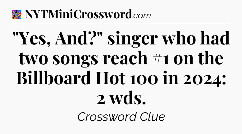 The clue “”Yes, And?” singer who had two songs reach #1 on the Billboard Hot 100 in 2024: 2 wds” most recently appeared in a Crosswords With Friends on October 23, 2025.