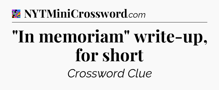 There is 1 possible answer for the crossword clue “”In memoriam” write-up, for short”.