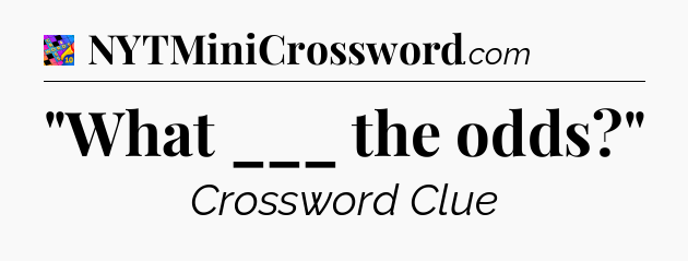 This page will help you find the correct answer to the ‘”What ___ the odds?”‘ clue from Crosswords With Friends. If you’re stuck, simply scroll down to see the solution. We also provide extra answers, helpful hints, and tips to make solving Crosswords With Friends easier and more enjoyable. Use this resource anytime you need quick assistance with tough clues!