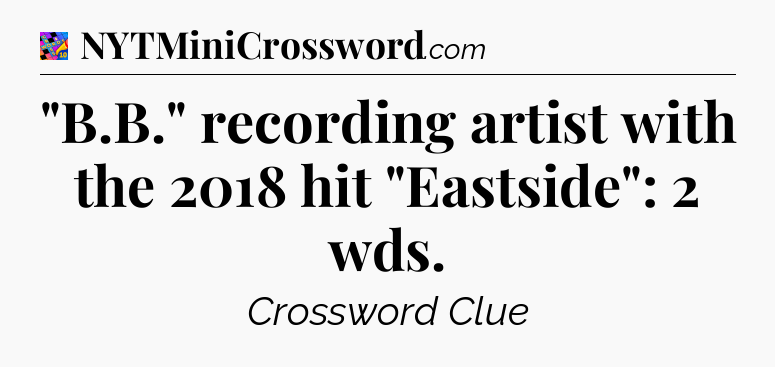 This page will help you find the correct answer to the ‘”B.B.” recording artist with the 2018 hit “Eastside”: 2 wds’ clue from Crosswords With Friends. If you’re stuck, simply scroll down to see the solution. We also provide extra answers, helpful hints, and tips to make solving Crosswords With Friends easier and more enjoyable. Use this resource anytime you need quick assistance with tough clues!
