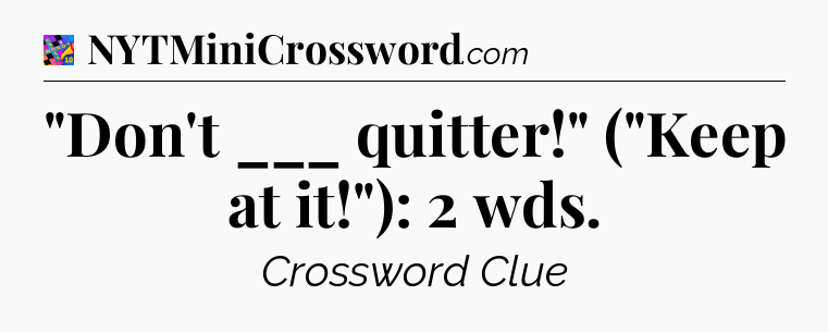 The clue “”Don’t ___ quitter!” (“Keep at it!”): 2 wds” most recently appeared in a Crosswords With Friends on October 30, 2025.