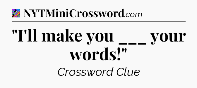The clue “”I’ll make you ___ your words!”” most recently appeared in a Crosswords With Friends on October 31, 2023.