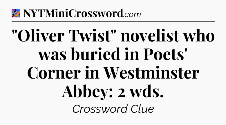 The clue “”Oliver Twist” novelist who was buried in Poets’ Corner in Westminster Abbey: 2 wds” most recently appeared in a Crosswords With Friends on October 7, 2023.