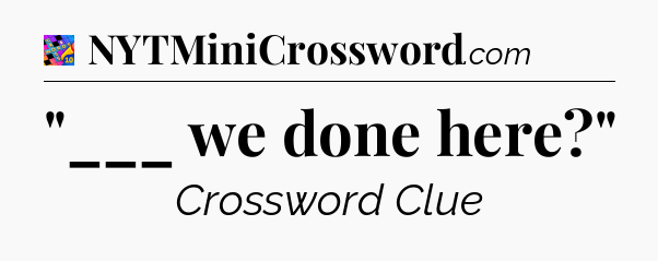 This page will help you find the correct answer to the ‘”___ we done here?”‘ clue from Crosswords With Friends. If you’re stuck, simply scroll down to see the solution. We also provide extra answers, helpful hints, and tips to make solving Crosswords With Friends easier and more enjoyable. Use this resource anytime you need quick assistance with tough clues!