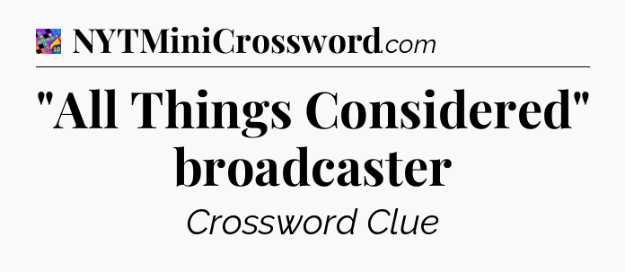 There is 1 possible answer for the crossword clue “”All Things Considered” broadcaster”.