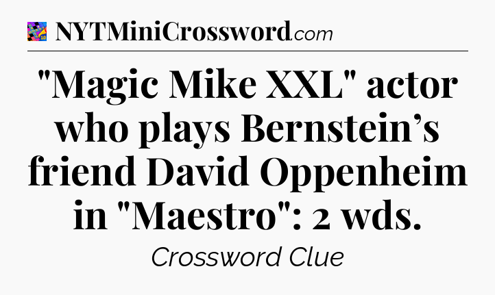 The clue “”Magic Mike XXL” actor who plays Bernstein’s friend David Oppenheim in “Maestro”: 2 wds” most recently appeared in a Crosswords With Friends on November 27, 2023.