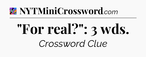 This page will help you find the correct answer to the ‘”For real?”: 3 wds’ clue from Crosswords With Friends. If you’re stuck, simply scroll down to see the solution. We also provide extra answers, helpful hints, and tips to make solving Crosswords With Friends easier and more enjoyable. Use this resource anytime you need quick assistance with tough clues!