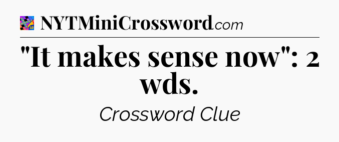 The clue “”It makes sense now”: 2 wds” most recently appeared in a Crosswords With Friends on November 7, 2024.