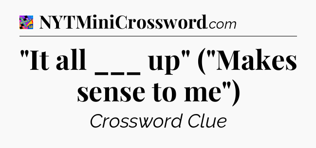 This page will help you find the correct answer to the ‘”It all ___ up” (“Makes sense to me”)’ clue from Crosswords With Friends. If you’re stuck, simply scroll down to see the solution. We also provide extra answers, helpful hints, and tips to make solving Crosswords With Friends easier and more enjoyable. Use this resource anytime you need quick assistance with tough clues!