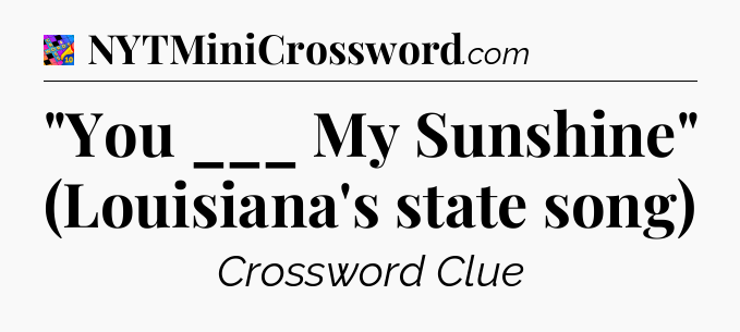 This page will help you find the correct answer to the ‘”You ___ My Sunshine” (Louisiana’s state song)’ clue from Crosswords With Friends. If you’re stuck, simply scroll down to see the solution. We also provide extra answers, helpful hints, and tips to make solving Crosswords With Friends easier and more enjoyable. Use this resource anytime you need quick assistance with tough clues!