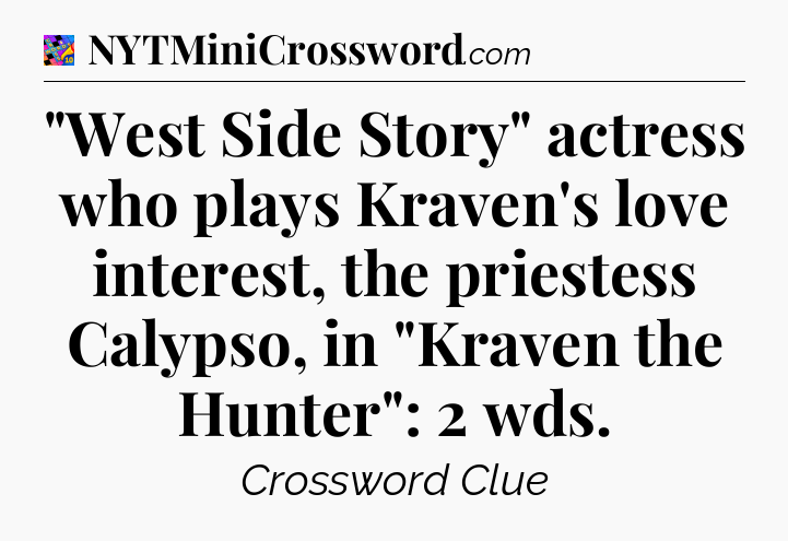 The clue “”West Side Story” actress who plays Kraven’s love interest, the priestess Calypso, in “Kraven the Hunter”: 2 wds” most recently appeared in a Crosswords With Friends on December 16, 2024.