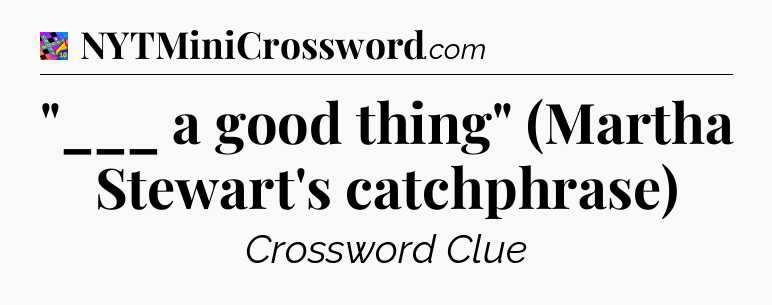 The clue “”___ a good thing” (Martha Stewart’s catchphrase)” most recently appeared in a Crosswords With Friends on December 18, 2023.