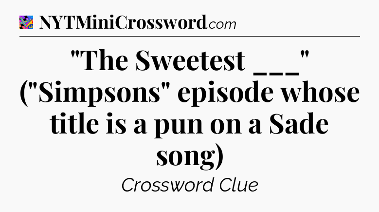 The clue “”The Sweetest ___” (“Simpsons” episode whose title is a pun on a Sade song)” most recently appeared in a Crosswords With Friends on December 20, 2023.