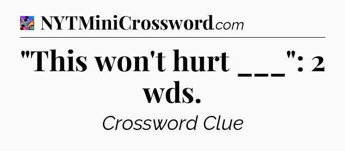 This page will help you find the correct answer to the ‘”This won’t hurt ___”: 2 wds’ clue from Crosswords With Friends. If you’re stuck, simply scroll down to see the solution. We also provide extra answers, helpful hints, and tips to make solving Crosswords With Friends easier and more enjoyable. Use this resource anytime you need quick assistance with tough clues!