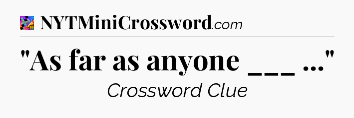 This page will help you find the correct answer to the ‘”As far as anyone ___ …”‘ clue from Crosswords With Friends. If you’re stuck, simply scroll down to see the solution. We also provide extra answers, helpful hints, and tips to make solving Crosswords With Friends easier and more enjoyable. Use this resource anytime you need quick assistance with tough clues!