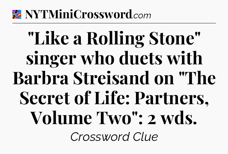 The clue “”Like a Rolling Stone” singer who duets with Barbra Streisand on “The Secret of Life: Partners, Volume Two”: 2 wds” most recently appeared in a Crosswords With Friends on December 25, 2025.