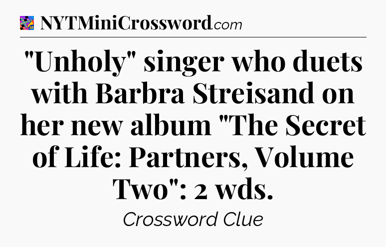 The clue “”Unholy” singer who duets with Barbra Streisand on her new album “The Secret of Life: Partners, Volume Two”: 2 wds” most recently appeared in a Crosswords With Friends on December 25, 2025.
