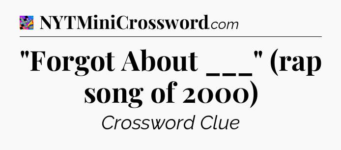 This page will help you find the correct answer to the ‘”Forgot About ___” (rap song of 2000)’ clue from Crosswords With Friends. If you’re stuck, simply scroll down to see the solution. We also provide extra answers, helpful hints, and tips to make solving Crosswords With Friends easier and more enjoyable. Use this resource anytime you need quick assistance with tough clues!