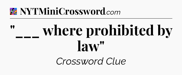 This page will help you find the correct answer to the ‘”___ where prohibited by law”‘ clue from Crosswords With Friends. If you’re stuck, simply scroll down to see the solution. We also provide extra answers, helpful hints, and tips to make solving Crosswords With Friends easier and more enjoyable. Use this resource anytime you need quick assistance with tough clues!